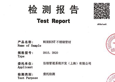 • 德國伍鉑WURBUNT管材檢測證書